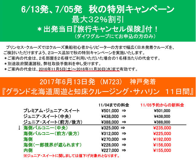 ☆★年内出発に限り大幅割引 クルーズキャンペーン実施中!★☆