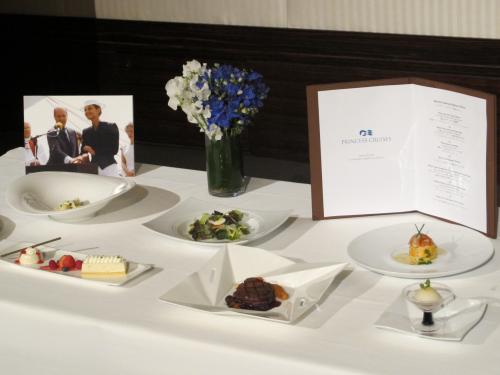お祝いメニュー: 「鴨のテリーヌ、アプリコット・ジャム添え」や「ターボット・フィレ、トリュフ・アサツキ・ソース添え」など、過去50年の間に提供してきた記念料理を、各クルーズ旅程中1晩、メイン・ダイニングで特別メニューとして提供する。洋上で最高級のピザを提供することで知られるプリンセス・クルーズは、「スパイシー・トマト&シュリンプ・ピザ」、「ポテト・ピザ」、「ベーコン&ブリチーズ・タイ・ピザ」など、
